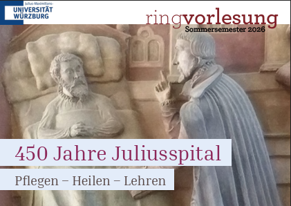 450 Jahre Juliusspital. Pflegen – Heilen – Lehren. Ringvorlesung des Kollegs Mittelalter und Frühe Neuzeit im Sommersemster 2026. Alle Informationen finden Sie hier.