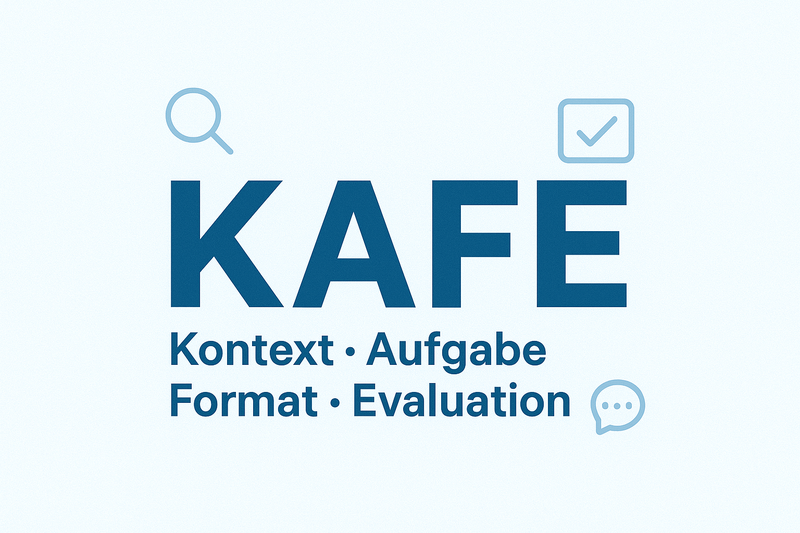 Die KAFE-Regel (Kontext, Aufgabe, Format, Evaluation) hilft dabei, Prompts systematisch zu gestalten: